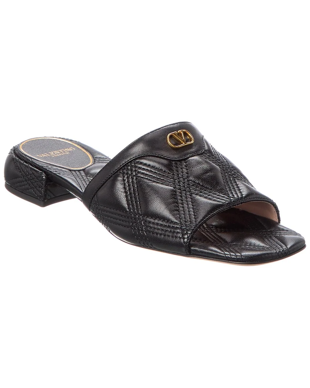 - About the Product: - Quilted Leather Slide Sandals with Gold VLogo Hardware - Color/Pattern: Black - Gold-tone VLogo Accent - Lightly Padded Leather Insole - Smooth Leather Sole - Slip-on Style - Diamond Quilted Pattern - Quilted Leather - Made in Italy - Size & Fit: - 1 inch heel - Size selections are European, for US conversions please reference size chart - Based on feedback from Members, this brand typically runs small, we suggest sizing up a half size for most styles - All measurements are approximate and were taken from a size 37, slight variations may occur - About the Brand: - Signature elegance with a modern aesthetic. - Please Note: - Our products are 100% genuine. In some cases we purchase merchandise from trusted independent suppliers and not directly from the brand owner. In all cases we stand by the authenticity of every product sold on our site.