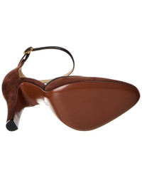 - About the brand: Signature elegance with a modern aesthetic. - Please note: Size selections are European. For US conversions, please reference size chart. - Based on feedback from Members, this brand typically runs small. We suggest sizing up a half size for most styles. - Made in Italy - VLogo Signature 105 Suede & Leather Pump in brown suede and black leather and gold-tone hardware with VLogo accent - Adjustable ankle strap with buckle closure - Lightly padded leather insole - Smooth leather sole - 4.5in heel - Please note: All measurements are approximate and were taken from a size 37; slight variations may occur. - Our products are 100% genuine. In some cases we purchase merchandise from trusted independent suppliers and not directly from the brand owner. In all cases we stand by the authenticity of every product sold on our site.