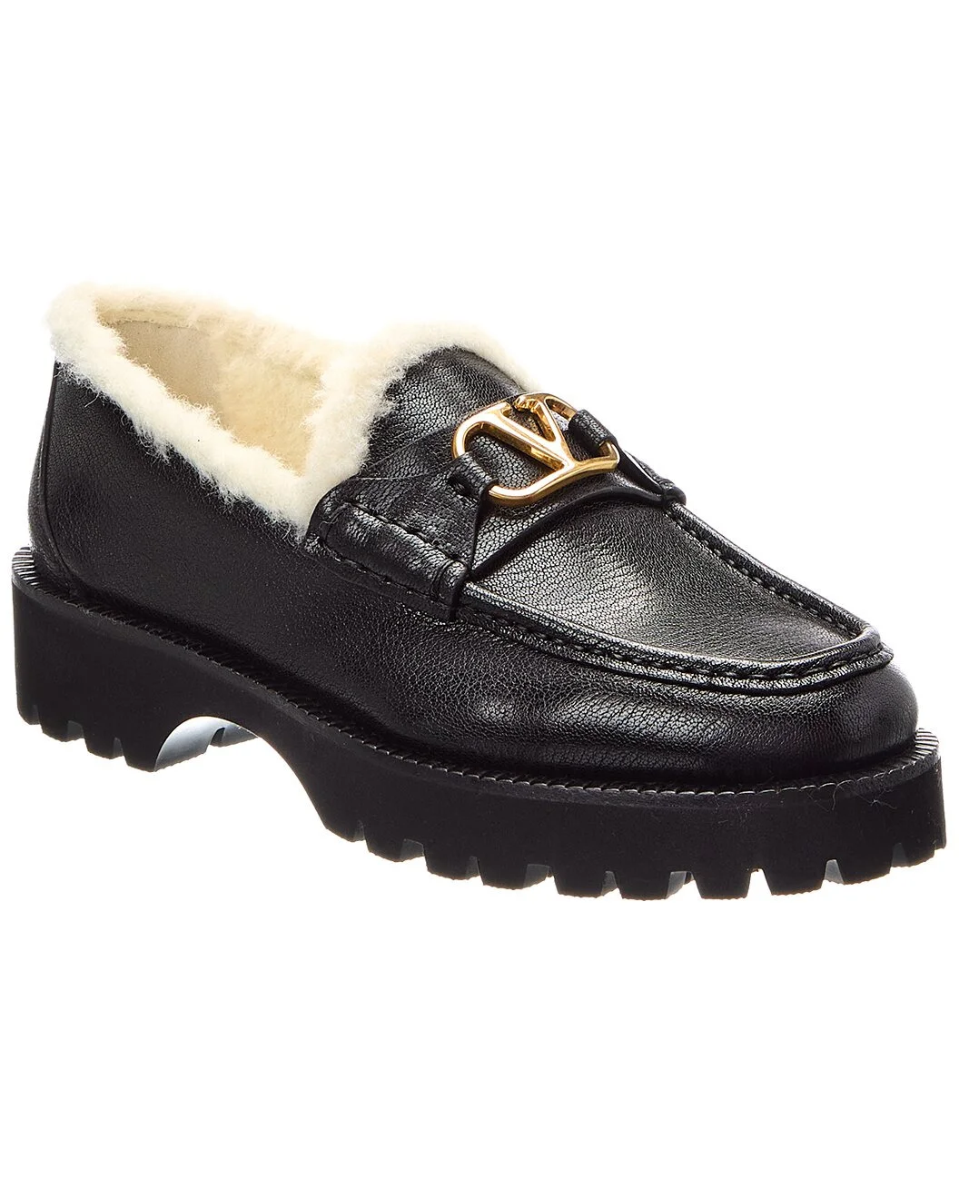 - About the brand: Signature elegance with a modern aesthetic. - Please note: Size selections are European. For US conversions, please reference size chart. - Based on feedback from Members, this brand typically runs small. We suggest sizing up a half size for most styles. - Made in Italy - VLogo Signature Leather & Shearling Loafer in black leather and gold-tone hardware with VLogo accent - Sheepskin lining - Rubber sole with traction - 1.5in heel - 1in platform - Please note: All measurements are approximate and were taken from a size 37; slight variations may occur. - Our products are 100% genuine. In some cases we purchase merchandise from trusted independent suppliers and not directly from the brand owner. In all cases we stand by the authenticity of every product sold on our site.