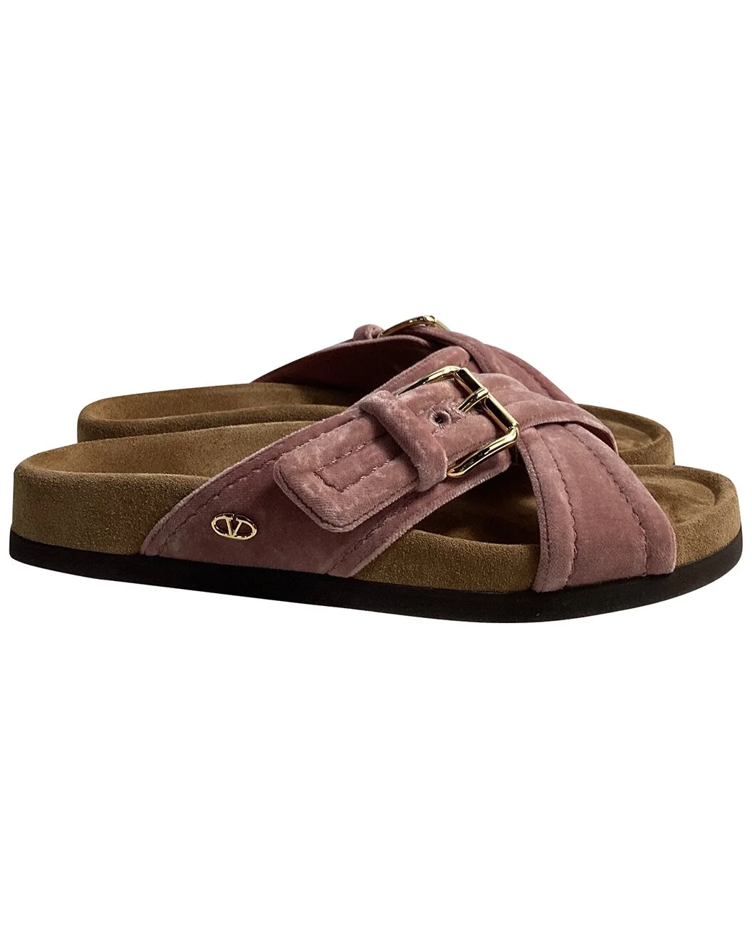 - About the brand: Signature elegance with a modern aesthetic. - This is an authentic, pre-loved piece. This item is in excellent condition, but may show slight signs of wear. This item shows unused or used once, but as good as new. no sign of wear. - For more information on condition, please see our condition guide at the bottom - Color/material: rose velvet - Design details: Add a touch of luxury and elegance to your footwear collection with the Valentino Garavani Cross Strap Slip-On Flats in soft pink velvet. These chic and sophisticated flats embody Valentino's signature blend of comfort and high-fashion design, making them a versatile addition to any wardrobe. - Accompanied by Box - 1.37in heel - 9.84in insole length - Please note: All measurements were taken by hand and are approximate; slight variations may occur. - Available only in Women's size IT - 37.5 - The Pre-Loved Condition Guide - Our products are 100% genuine. In some cases we purchase merchandise from trusted independent suppliers and not directly from the brand owner. In all cases we stand by the authenticity of every product sold on our site.