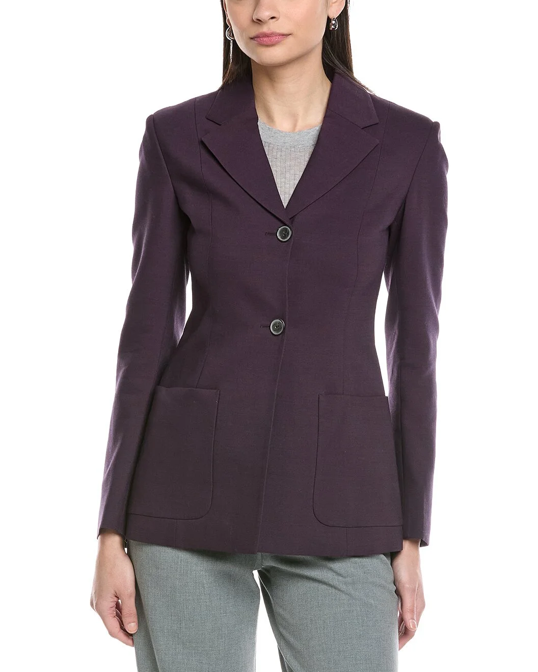 - About the brand: Signature elegance with a modern aesthetic. - Wool & Silk-Blend Jacket in ripe plum with patch pockets - Please note: Size selections are European. For US conversions, please reference the size chart. - Approximately 27in from shoulder to hem - Model is 5'9 and is wearing a size 36. Measurements may vary slightly by size. - Two-button closure - Shell: 52% wool, 44% silk, 4% elastane - Lining: 57% viscose, 43% polyester - Dry clean only - Made in Italy - Our products are 100% genuine. In some cases we purchase merchandise from trusted independent suppliers and not directly from the brand owner. In all cases we stand by the authenticity of every product sold on our site.