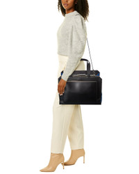 - Price as marked - Made in Italy - Color/material: black/blue leather - Design details: gold-tone hardware, removable zippered pouch - Interior design details: suede lining, interior pocket - Measures 15.5in wide x 11in high x 7.5in deep - Top handles drop 8in - Adjustable and removable shoulder strap drops 26in - Zipper closure - Protective feet at bottom - Please note: All measurements were taken by hand and are approximate; slight variations may occur. - Our products are 100% genuine. In some cases we purchase merchandise from trusted independent suppliers and not directly from the brand owner. In all cases we stand by the authenticity of every product sold on our site.
