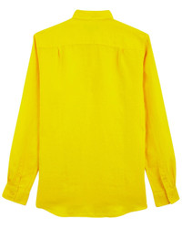 - About the brand: Saint-Tropez inspired swimwear in can't-miss colors & prints. - Linen Shirt in Safran - Approximately 27in from shoulder to hem - The Men's Size Guide - 100% linen - Hand wash - Imported