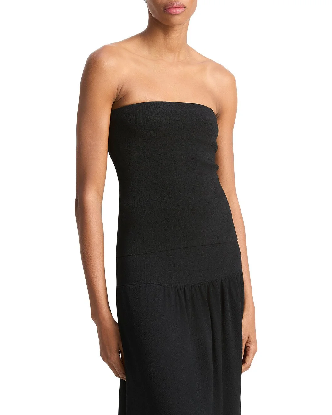 - About the brand: Inspired by the natural beauty of California, Vince is a master of simplicity and laid-back staples. From understated knitwear to tailored essentials, Vince's casual cool vibes are simply timeless. - Compact Sweater Tube Top in black - Approximately 14.5in from shoulder to hem - 75% viscose, 25% polyamide - Hand wash - Made in Italy