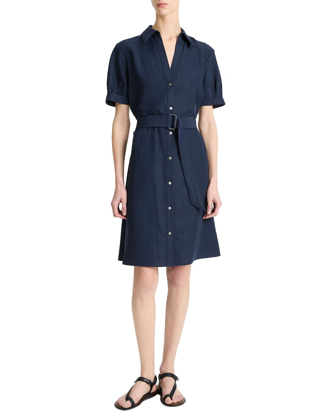 - About the brand: Inspired by the natural beauty of California, Vince is a master of simplicity and laid-back staples. From understated knitwear to tailored essentials, Vince's casual cool vibes are simply timeless. - Cuffed Belted Shirt Dress in coastal blue - Self: 90% Tencel Tm Lyocell, 10% Nylon - Hand wash - Imported
