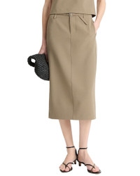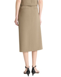 - About the brand: Inspired by the natural beauty of California, Vince is a master of simplicity and laid-back staples. From understated knitwear to tailored essentials, Vince's casual cool vibes are simply timeless. - Belted Pencil Skirt in oak moss - Approximately 30in from waist to hem - 62% polyester, 32% viscose, 6% elastane - Hand wash - Imported