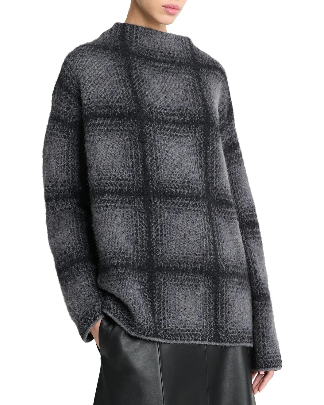 Vince Shadow Plaid Funnel Neck Alpaca & Wool-Blend Sweater
