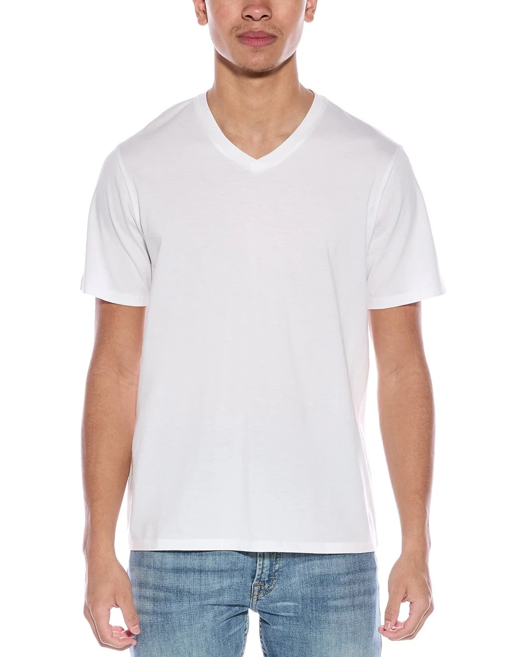 - About the brand: Inspired by the natural beauty of California, Vince is a master of simplicity and laid-back staples. From understated knitwear to tailored essentials, Vince's casual cool vibes are simply timeless. - V-Neck T-Shirt in optic white - Approximately 28in from shoulder to hem - Model is 6'2 and is wearing a size medium. Measurements may vary slightly by size. - The Men's Size Guide - 100% cotton - Machine wash - Imported