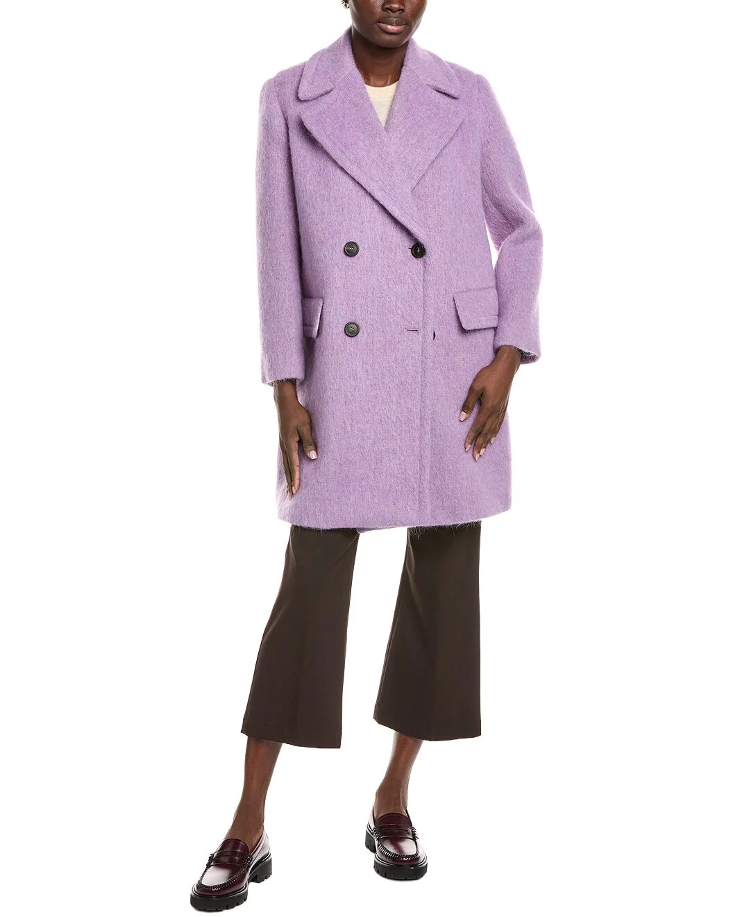 - About the brand: Sophisticated, casual elegance. - Hello Wool, Mohair & Alpaca-Blend Coat in purple with notched lapel and two front flap pockets - Approximately 36in from shoulder to hem - Model is 5'10 and is wearing a size 2. Measurements may vary slightly by size. - Double-breasted button closure - Lightweight - 67% virgin wool, 12% mohair, 12% alpaca, 9% polyamide - Lining: 50% acetate, 50% viscose - Dry clean only - Imported