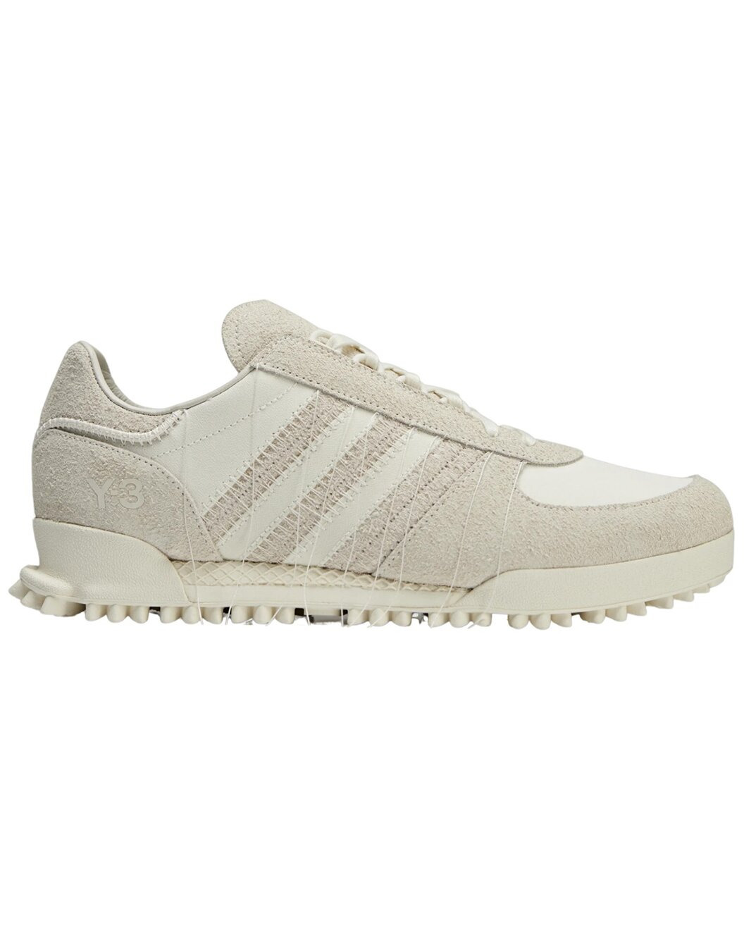 - About the brand: Innovative athletic wear for every sport. - Color/material: white suede and textile - Design details: Lace closure. Suede and textile upper. Leather and canvas lining. Rubber outsole. Y-3 logo. Japanese technique of Sashiko stitching. they have accentuated and tonal stitching around the eyestay, heel tab. midsole and the signature 3-Stripes. - Lace-up closure - Moderately padded footbed - Rubber sole - Imported