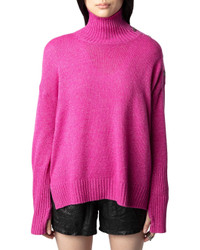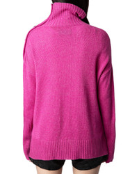 - About the brand: Zadig & Voltaire is a modern and edgy brand that plays with ambiguity in all areas of life. Based in Paris, the brand prides itself on individuality and self expression. Pulling inspiration from literary and art icons through the ages, Zadig & Voltaire embraces strength and inclusivity. - Sweater in pink - Design details: Fuchsia pink cashmere sweater with funnel neck and diamante star buttons on the shoulder. - 85% cashmere 10% polyester 5% metallic fibers - Machine wash - Imported
