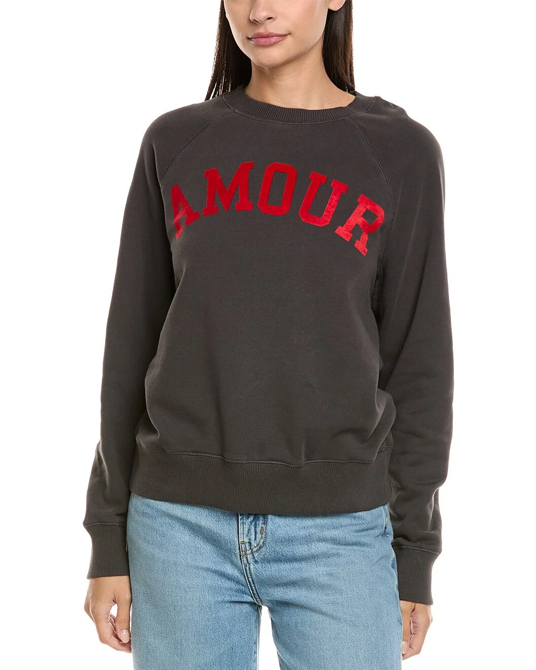 - About the brand: Zadig & Voltaire is a modern and edgy brand that plays with ambiguity in all areas of life. Based in Paris, the brand prides itself on individuality and self expression. Pulling inspiration from literary and art icons through the ages, Zadig & Voltaire embraces strength and inclusivity. - Amour Flock Sweatshirt in carbon with crewneck, and ribbed trim - Approximately 25in from shoulder to hem - Model is 5'10 and is wearing a size small. Measurements may vary slightly by size. - Slip-on styling - 100% cotton - Machine wash - Imported