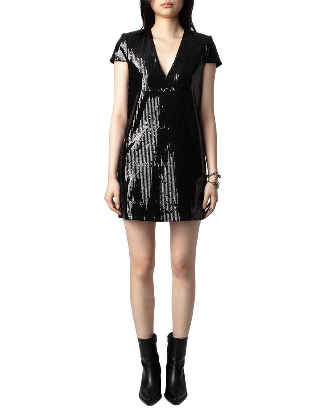 - About the brand: Zadig & Voltaire is a modern and edgy brand that plays with ambiguity in all areas of life. Based in Paris, the brand prides itself on individuality and self expression. Pulling inspiration from literary and art icons through the ages, Zadig & Voltaire embraces strength and inclusivity. - Dress in noir with sequin embellishment - Measurements taken from a size M and may vary slightly by size. - Zipper closure - 100% polyester - Dry clean only - Imported