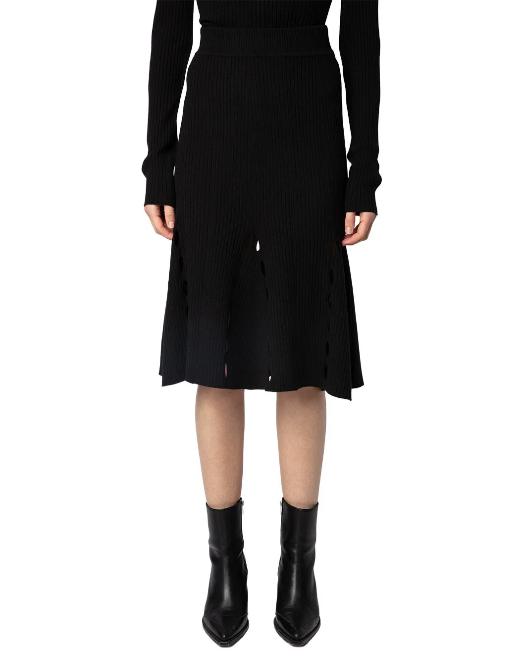 - About the brand: Zadig & Voltaire is a modern and edgy brand that plays with ambiguity in all areas of life. Based in Paris, the brand prides itself on individuality and self expression. Pulling inspiration from literary and art icons through the ages, Zadig & Voltaire embraces strength and inclusivity. - Skirt in noir - Measurements taken from a size 38 and may vary slightly by size. - Slip-on styling - 90% Merino wool, 10% Polyester - Machine wash cold - Imported