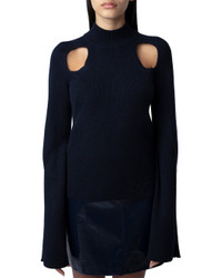 - About the brand: Zadig & Voltaire is a modern and edgy brand that plays with ambiguity in all areas of life. Based in Paris, the brand prides itself on individuality and self expression. Pulling inspiration from literary and art icons through the ages, Zadig & Voltaire embraces strength and inclusivity. - Wool Sweater in encore - Design details: Long sleeve sweater with cut outs on shoulder - Slip-on styling - 100% merino wool - Machine wash - Imported