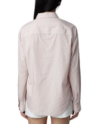 - About the brand: Zadig & Voltaire is a modern and edgy brand that plays with ambiguity in all areas of life. Based in Paris, the brand prides itself on individuality and self expression. Pulling inspiration from literary and art icons through the ages, Zadig & Voltaire embraces strength and inclusivity. - Top in primrose - Design details: Long sleeve button down with embellishments on collar - Buttoned front - 100% cotton - Machine wash - Imported