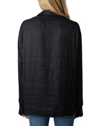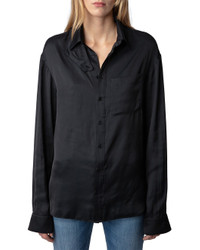 - About the brand: Zadig & Voltaire is a modern and edgy brand that plays with ambiguity in all areas of life. Based in Paris, the brand prides itself on individuality and self expression. Pulling inspiration from literary and art icons through the ages, Zadig & Voltaire embraces strength and inclusivity. - Top in noir - Design details: Long sleeve satin button down - Buttoned front - 57% polyester, 43% polyester - Machine wash - Imported