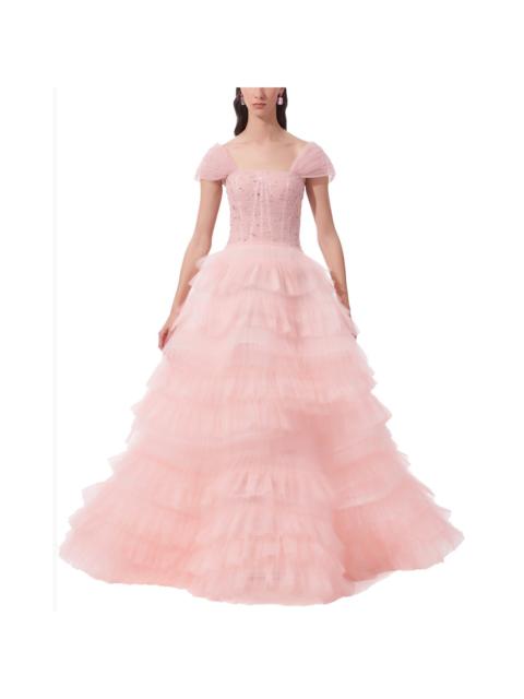 Carolina Herrera Off-Shoulder Pleated Tulle Ruffle Gown