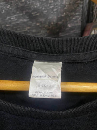 Number (N)ine Plain Black T Shirt 100% authentic 100% cotton Great condition Size on tag 3 Made in Japan Measured backside facing laying flat (roughly); Pit to pit 19'' Length 25.5'' Paypal only. Will ship out between 1-3 business days once full payment received. All sales are final. DO NOT expect the item to be in a brand new condition (unless stated). Any defect or hole will be stated and shown in the images. Do message me for any other inquiry or to request more photos. Cheers and happy shopping.