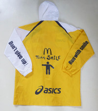 Asics with McDonalds 'Team Smile' 2013 Tokyo Marathon hooded windbreaker. 2 front pockets Measurement (Inches): Armpit to armpit: 26" (approx. XXL) Length: 32.5" Condition: 9/10 Material : 100% Polyester Weight: 310gm • Please check the measurements and photos.. • Colours may slightly vary due to photographic lighting sources / monitor settings. • Item will be shipped within 2 working days with DHL Express ( 5 to 7 working days to arrive) • Kindly provide your contact number for shipping purpose. Thank you. Have a nice day!