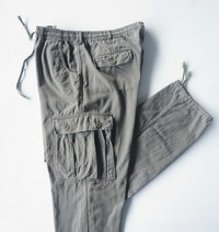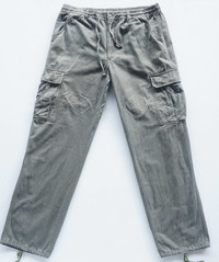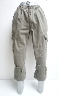 • Japanese brand • Drawstring on waist & bottom hem • Missing 1 rear pocket button (refer last pic) • Condition: 8/10 Good used condition. • Material: Cotton Size on Tag: M Measurement in Inches (done with the item laying flat): Waist: 33" - 35"- adjustable with drawstring Hip: 46" Thigh: 28" Front rise: 13" Back rise: 15” Knee: 22" Inseam: 32” Length: 44” Leg opening: 17" - adjustable with drawstring • Please check the measurements and photos • Colours may slightly vary due to photographic lighting sources / monitor settings. • Item will be shipped within 2 working days with DHL Express ( 5 to 7 working days to arrive) Thank you.