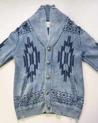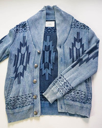 Japanese brand BAYFLOW native design sweater. Button- up with 2 front pockets Size on Tag: 3 Measurements in inches (done with the item laying flat): Armpit to armpit: 19.5" (Approx size S / M) Length: 26" Shoulder to shoulder: 16.5" Sleeve length: 26.5" Condition: Good used condition. 8/10 Material : Cotton Weight: 880gm • Please check the measurements and photos • Colours may slightly vary due to photographic lighting sources / monitor settings. • Item will be shipped within 2 working days with DHL Express (5 to 7 working days to arrive) • Kindly provide your phone number for shipping purpose. Thank you.