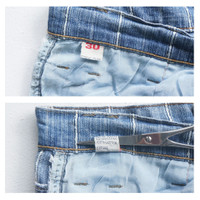 • Brand: Karen • Made for Japan market • 2 front pockets + 2 back pockets • Zipper closure • Material: Cotton • Condition: 7/10 Good used condition • Rusty spot stains at some parts eg button & back pockets (refer photo) • Slightly faded • The torn part (thigh area) has been repaired (refer photo) Size on tag: 30 Measurements in Inches: Waist: 30" Hip: 40" Front Rise: 10" Back Rise: 12" Thigh: 23" Knee: 18" Leg Opening: 21" Inseam: 28.5" Outseam (Total Length): 38" • Please check the measurements & photos • Colors may slightly vary due to photography lighting / monitor settings • Feel free to offer • Item will be shipped with DHL Express (estimated arrival between 5 to 7 working days) • Kindly provide your contact number for shipping purpose Thank you.