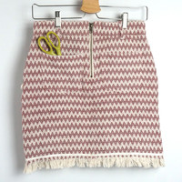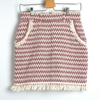 Japanese Brand - MYSTIC Tribal Geometric Striped Design with Fringe Hem Skirt