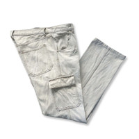 Radmess Men's Bigi yellowish grey vintage look hickory striped denim cargo. Size on tag: M Measurement in Inches (done with the item laying flat): Waist: 31" Hip: 39" Thigh: 21" Knee: 17" Front rise: 10" Zip Length: 6.5" Back rise: 13” Leg opening: 16" Total Length: 39” Inseam: 29” Condition: Used condition 7/10 (Item has been used or worn previously, please don't expect it to be like new) Weight: 605gm • Please check the measurements and photos. • Colours may slightly vary due to photographic lighting sources / monitor settings. • Item will be shipped within 2 working days with DHL Express (less than 7 days to arrive) • Kindly provide your contact number for shipping purpose. Thank you.