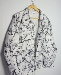 Shirt look-a-like button up marbles design windbreaker by RAGOUT. Comes with mesh lining, drawstring bottom hem and 2 front pockets Size on tag: M Measurement (Inches): Armpit to armpit: 21" Length: 27" Shoulder to shoulder: 17.5" Sleeve length: 24" Condition: Good used condition Material : 100% Polyester Weight: 320gm • Kindly check the measurements and photos. • Colours may slightly vary due to photographic lighting sources / monitor settings. • Item will be shipped within 2 working days with DHL Express (5 to 7 working days to arrive) • Kindly provide your contact number for shipping purpose. Thank you. Have a nice day!
