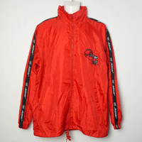 School Of HardKnocks windbreaker with hidden hood. Front & back cartoon embroidered with drawstring bottom hem and 2 pockets. Size on Tag: M Measurement (Inches): Armpit to armpit: 23" Length: 29.5" Condition: 8/10 ( a lil bit scratches in one sleeve hem - pic #7) Material : Polyester Weight: 310gm • Kindly check the measurements and photos. • Colours may slightly vary due to photographic lighting sources / monitor settings. • Item will be shipped within 2 working days with DHL Express (5 to 7 days to arrive) • Kindly provide your contact number for shipping purpose. Thank you.