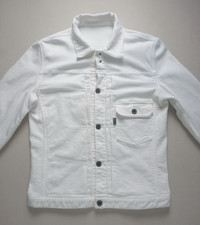 WJK white stretchable denim jacket with missing inner & wash label. Measurements in inches (done with the item laying flat): Armpit to armpit: 18" Length: 24" Shoulder to shoulder: 16" Sleeve length: 25" Hem: 17.5" Condition: • Good used condition. 8/10 • Missing inner & wash label • Small red stain on pocket (barely seen after I washed the jacket) Weight: 710gm • Kindly check the measurements and photos. • Colours of pictures uploaded may slightly vary due to photographic lighting sources / monitor settings. • Item will be shipped within 2 working days with DHL Express (5 to 7 working days to arrive) • Kindly provide your contact number for shipping purpose. Thank you. Have a nice day!