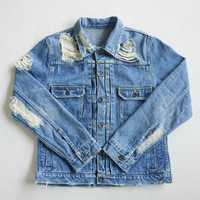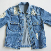 ROYAL BLUE Ripped & Patched Distressed Denim Jacket
