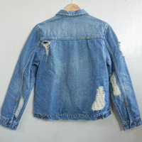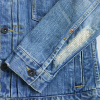 4 front pockets button-down ripped & patched Japanese brand distressed denim jacket. Made in China Size on tag: Large Measurements in inches (done with the item laying flat): Armpit to armpit: 18" Length: 23" Shoulder to shoulder: 16" Sleeve length: 23" Hem: 18" Condition: Good used condition. 8/10 Ready to wear. Item has been washed. Weight: 700gm • Please check the measurements and photos. • Colours may slightly vary due to photographic lighting sources / monitor settings. • Item will be shipped within 2 working days with DHL Express (5 to 7 days to arrive.) • Kindly provide your contact number for shipping purpose. Thank you.