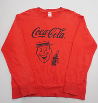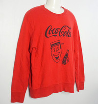 Crewneck pullover sweatshirt with Coca Cola logo spell-out and vintage-style cartoon. Size on Tag: L Measurement (Inches): Armpit to armpit: 22" Length: 26" Shoulder to shoulder: 19.5" Sleeve length: 24" Condition: Good used condition. Material : Cotton & Polyester Weight: 475gm • Kindly check the measurements and photos. • Colours may slightly vary due to photographic lighting sources / monitor settings. • Item will be shipped within 2 working days with DHL Express (5 to 7 working days to arrive) • Kindly provide your contact number for shipping purpose. Thank you. Have a nice day!