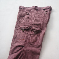 • Brand: Oilcake • Made for Japan market • 2 front pockets + 3 side pockets + 4 back pockets • Zipper closure • Button closure for pockets • Material: Cotton • Condition: 7/10 Good used condition with slightly faded at some parts and sign of usage • The torn part at the back of the pants has been repaired (refer photo) • Faded wash tag Size on tag: 78 Measurements in Inches: Waist: 29" Hip: 37" Front Rise: 8" Back Rise: 12" Thigh: 23" Knee: 18" Leg Opening: 18" Inseam: 29" Outseam (Total Length): 37.5" • Please check the measurements and photos • Colors may slightly vary due to photography lighting sources / monitor setting • Feel free to offer • Item will be shipped within 2 working days with DHL Express, estimated arrival between 5 to 7 working days • Kindly provide your contact number for shipping purpose. Thank you.