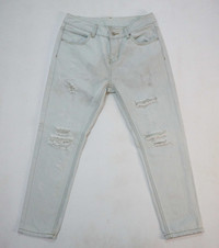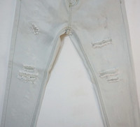 • Brand: Plays • Made for Korea market • Dirty look style distressed & ripped • Short zipper closure • Color: Faded white (slightly very light blue) with dirty spots Size on Tag: M Measurement in Inches (done with the item laying flat): Waist: 28" (round) Hip: 39" (round) Thigh: 21" (round) Front rise: 10" Zip Length: 3.5" Back rise: 13” Knee: 16" (round) Inseam: 24” Outseam (Length): 35.5” Leg opening: 12" (round) Condition: 8/10 Good used condition Material: Cotton & Polyurethane • Kindly check the measurements and photos uploaded • Colours may slightly vary due to photographic lighting sources / monitor settings. • Item will be shipped within 2 working days with DHL Express ( 5 to 7 working days to arrive) • Contact number needed for shipping purpose. Thank you.