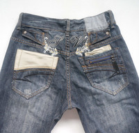 • Multiple pockets (5 pockets front & 3 pockets at back) • Embroidery at back • Cracked faux leather at back label and upper back pockets have been removed • Condition: 8/10 Good used condition Measurement in Inches (done with the item laying flat): Waist: 28" Hip: 41" Thigh: 23" Front rise: 10.5" Back rise: 13.5” Knee: 17" Inseam: 30” Outseam (Length): 41.5” Leg opening: 19" • Kindly check the measurements and photos uploaded • Colors may slightly vary due to photographic lighting sources / monitor settings. • Item will be shipped within 2 working days with DHL Express ( 5 to 7 working days to arrive) • Kindly provide your contact number for shipping purpose. Thank you.