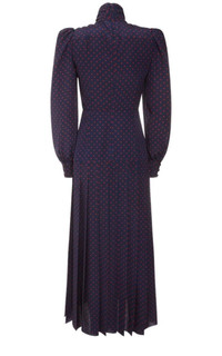 Add some prints to your look with this long sleeve dress, detailed in an allover polka dot print. High neck Long sleeves Allover dotted print, print placement may vary Dry clean Concealed back zip closure Button cuffs Decorative buttons at shoulder Partially lined Composition: 100% Silk Made in Italy