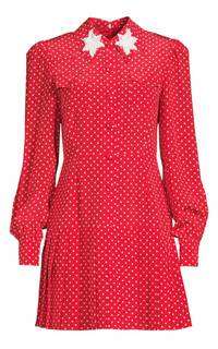 Halter strap with snap button closure Back zip closure Fitted waist Pleated skirt panels All over print placement may vary Unlined Composition: 100% Cotton Made in Italy