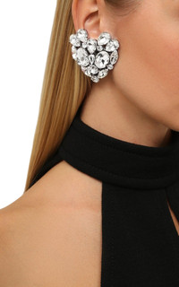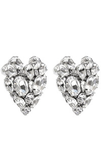 Bold and glamorous earrings feature an array of crystals that shimmer and shine in a heart motif.Glass crystal Silvertone Clip-on back Made in Italy
