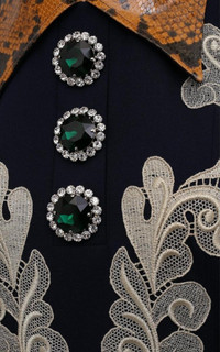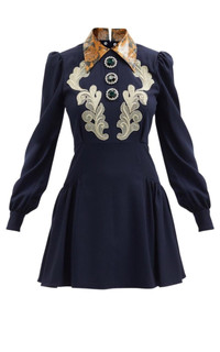 This Alessandra Rich Mini Dress is the perfect blend of vintage and chic. Crafted in wool, featuring a python print leather collar, this mini is great for any occasion. The macrame details and the jewellery buttons enhance this piece and make it a standout. Mini dress Python print leather collar Removable collar Back zip closure Jewellery buttons 96% wool, 3% polyamide, 1% elastane Regular fit Dry clean only Made in Italy