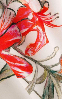 Floral print Halterneck Sleeveless design Flared style Frill trim. Designer Colour: 9023 WHITE Composition: Silk 100%; Lining: Acetate 74%, Silk 26% Washing instructions: Hand Wash Made in Italy