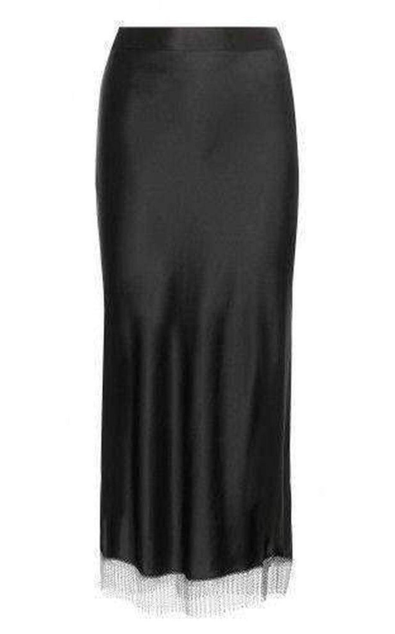 Black Silk Metal Fringe Skirt