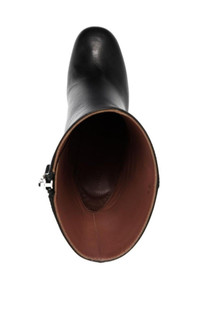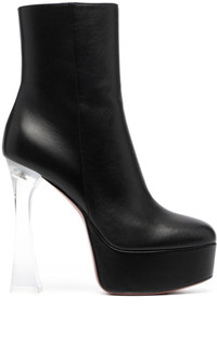 Dua Glass boots Round toe Side zip fastening Platform sole Transparent high heel Made in Italy Composition: Leather 100% Sole: Polyester 100%, Leather 100% Lining: Leather 100% Circumference: 8.7" Heel: 5.5" Height: 5.7" Sole height: 1.4" Made in Italy