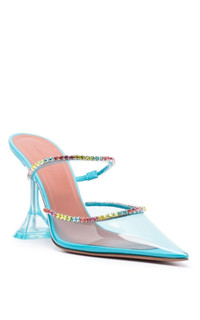 Sky blue transparent panel detail crystal embellishment crystal Leather trim Translucent design Pointed toe slip-on style 95mm sculpted heel Branded leather insole Leather outsole Composition: Polyurethane 100% Lining: Calf leather 100% Sole: Calf leather 100%, Plastic 100% Heel: 3.74"/9.5cm Made in Italy