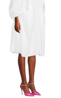 These chic d’Orsay pumps are crafted of luxe satin. They are further elevated with a dazzling crystal-embellished strap around the ankle. A stiletto heel and pointed toe add a classic finish. Upper: Acetate, Silk, PVC; Lining: Leather; Sole: Leather, TPU Point toe Stiletto heel Adjustable ankle strap Made in Italy