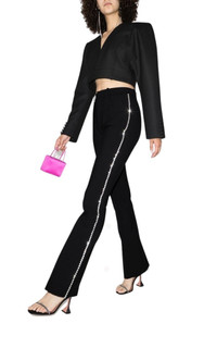 Elevate your look and make a subtle statement in these wool-blend pants with jeweled stripe details down the sides of the leg. Belt loops Hook-and-bar closure Waist slip pockets Jeweled embellished stripes down sides of pants 43% polyester, 33% virgin wool, 20% polyamide, 4% elastane Lining: 60% viscose, 40% polyester Dry clean Made in USA