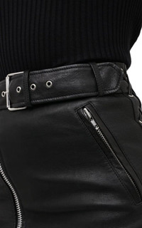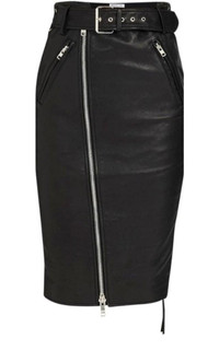 Black leather and stretch-jersey Two-way zip fastening through asymmetric front Belted waist Tone-on-tone lacing Fitted cut Midi skirt Fabric1: 100% leather (Lamb); fabric2: 65% viscose, 30% polyamide, 5% elastane; lining1: 100% viscose; lining2: 100% cotton Specialist clean Made in Italy