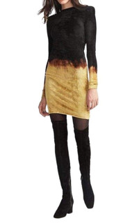 Gold-tone and black Fire Round neck Structured and padded shoulders Long sleeves Fitted silhouette and a short length. Visible zip closure behind shoulders 63% Viscose, 37% Polyamide Dry Clean Only Made in France